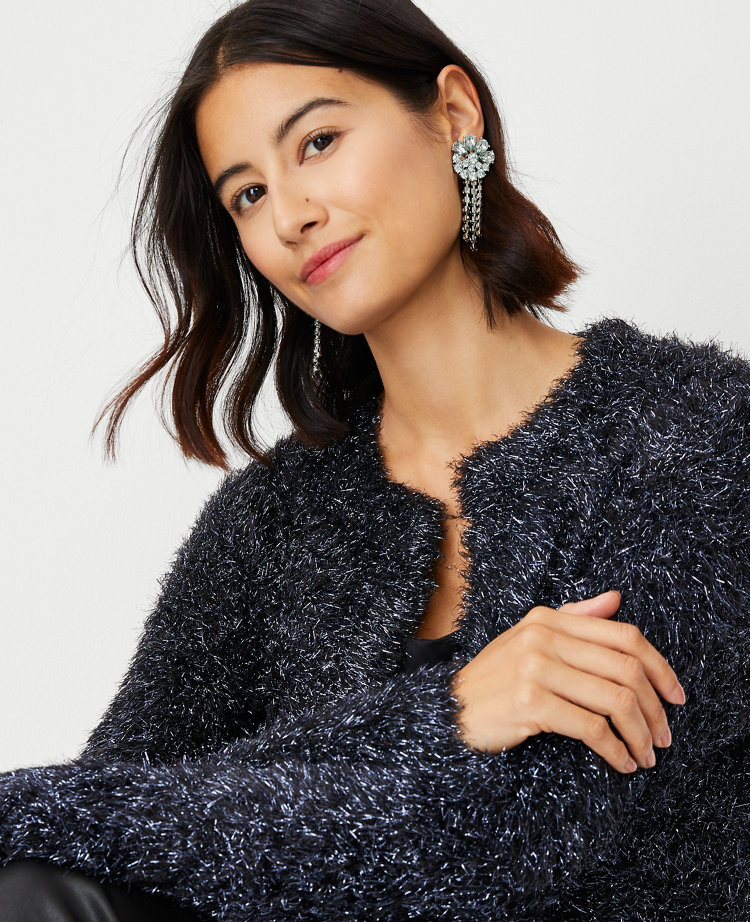 Dex Black Silver Lurex Embellished Trim Cardigan Very well made.