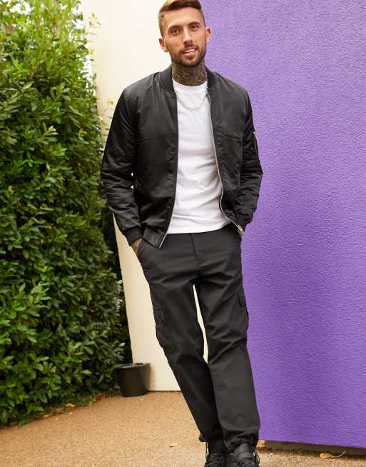 ASOS DESIGN MA1 padded bomber jacket in black with orange lining Very well made.