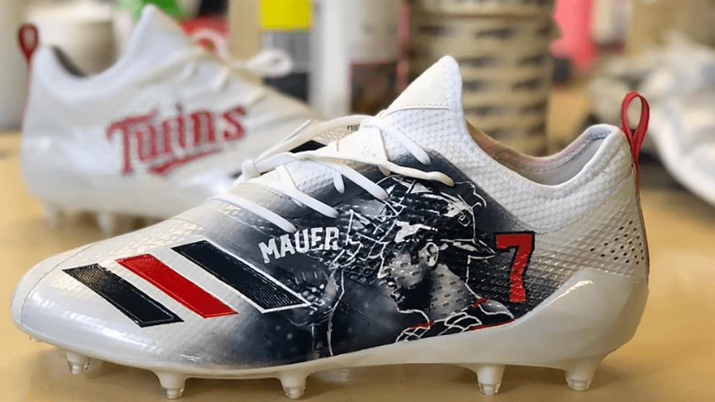Vikings wide receiver Adam Thielen wore custom Joe Mauer cleats Very well made.