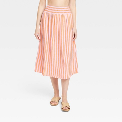 Women s Midi A line Skirt A New Day Light Orange Striped Xs Very well made.