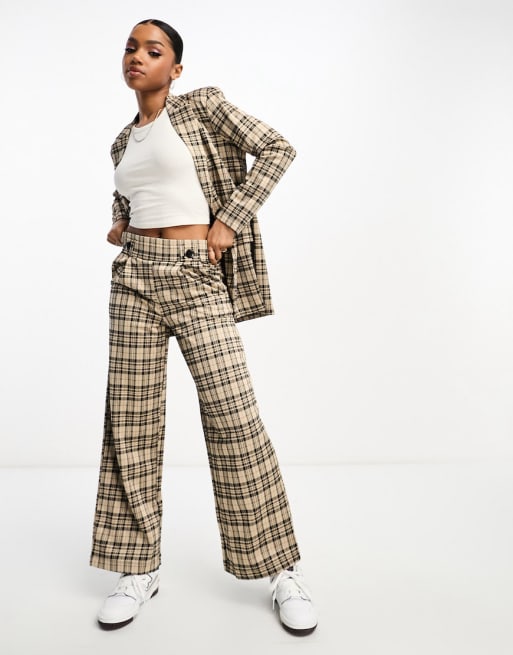 JDY button detail tailored pants and blazer set in brown check ASOS Very well made.