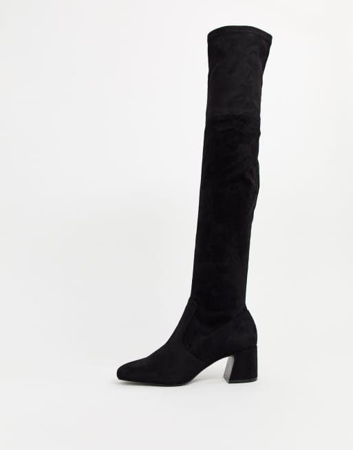 Stradivarius faux suede flared heel over the knee boots in black Very well made.