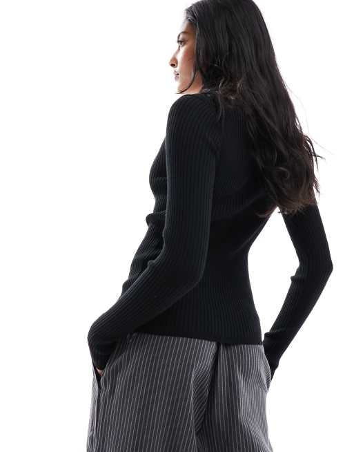 ASOS DESIGN jumper with scoop neck with rib bust detail in black Very well made.