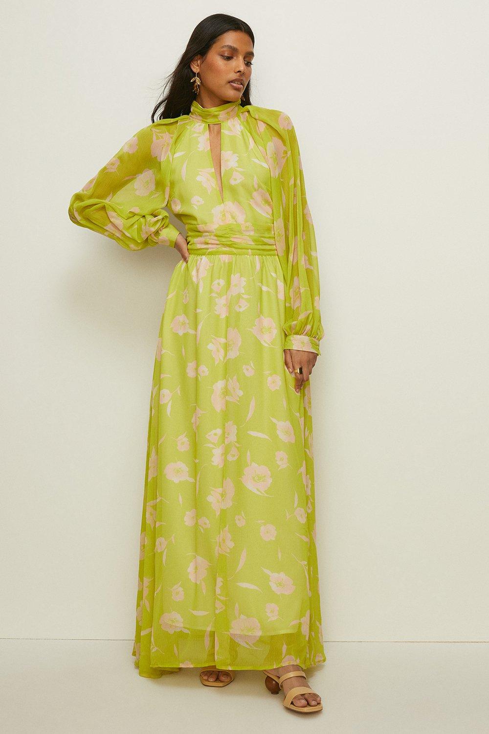 Dresses Cut Out Chiffon Balloon Sleeve Maxi Dress Oasis Very well made.