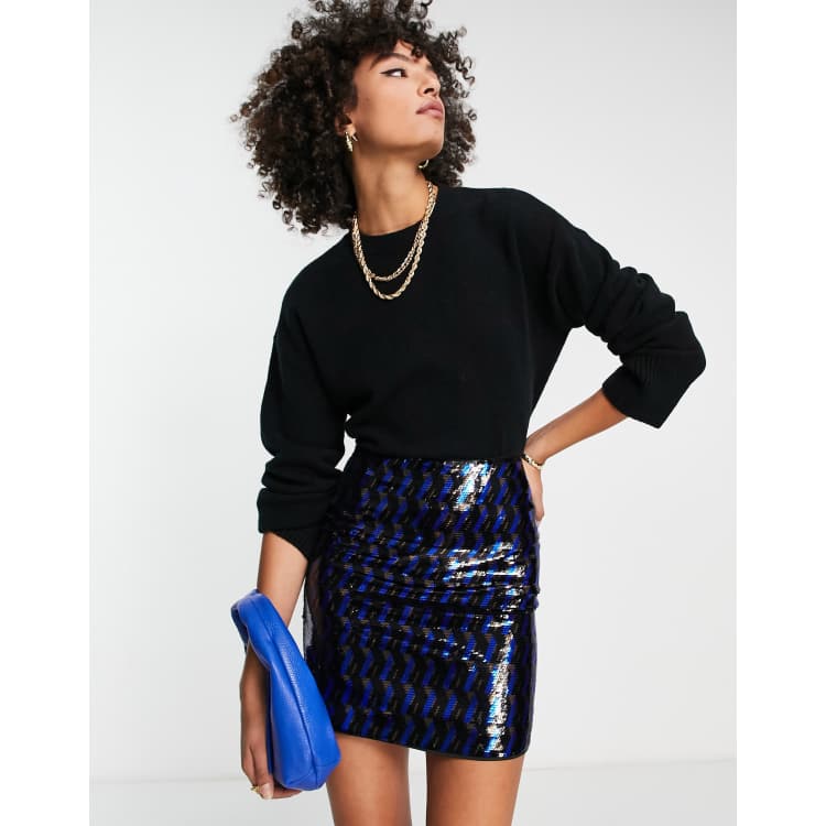 Other Stories all over sequin mini skirt in blue and black Very well made.