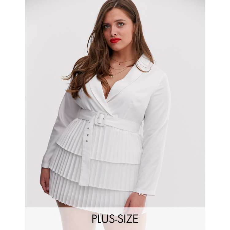 In The Style Plus plunge front blazer dress with pleated skirt in white Very well made.
