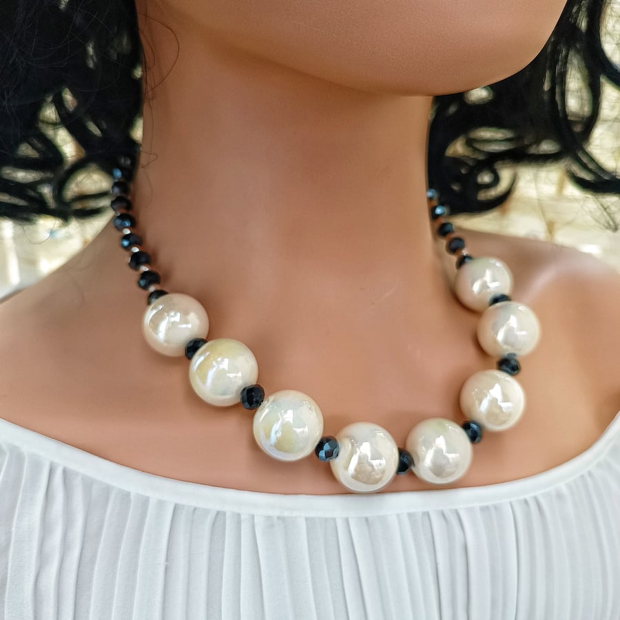 Chunky Ceramic Beads Necklace Cream Black Folksy Very well made.