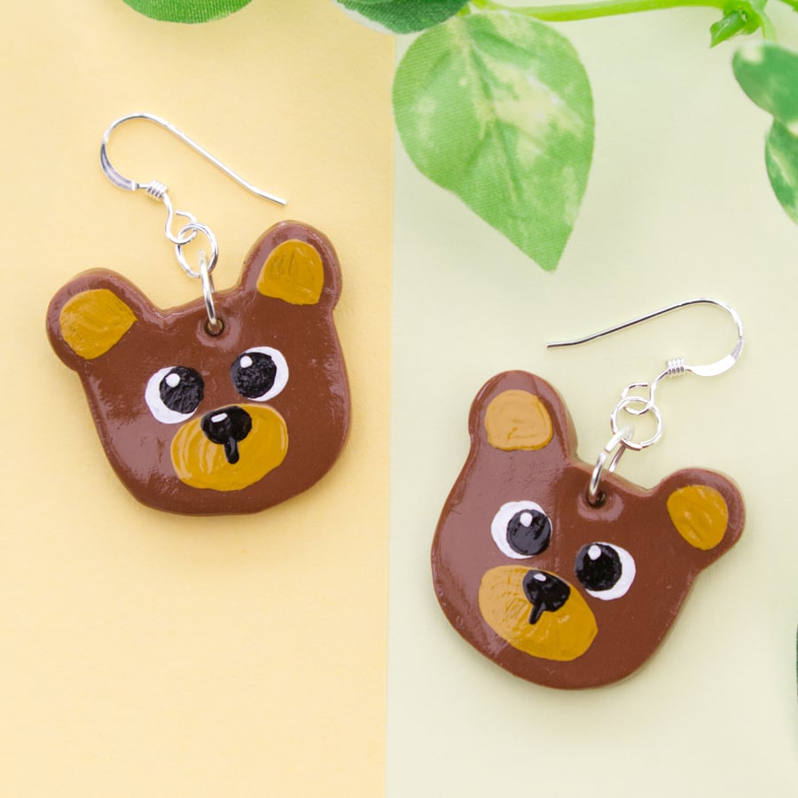 Cute Brown Bear Kawaii Polymer Clay Earrings Very well made.