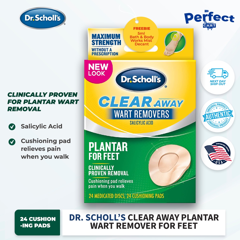 Dr. Scholl s Clear Away Plantar Wart Remover for Feet 24 Medicated Discs 24 Cushioning Pads Maximum Strength Without A Prescription Very well made.
