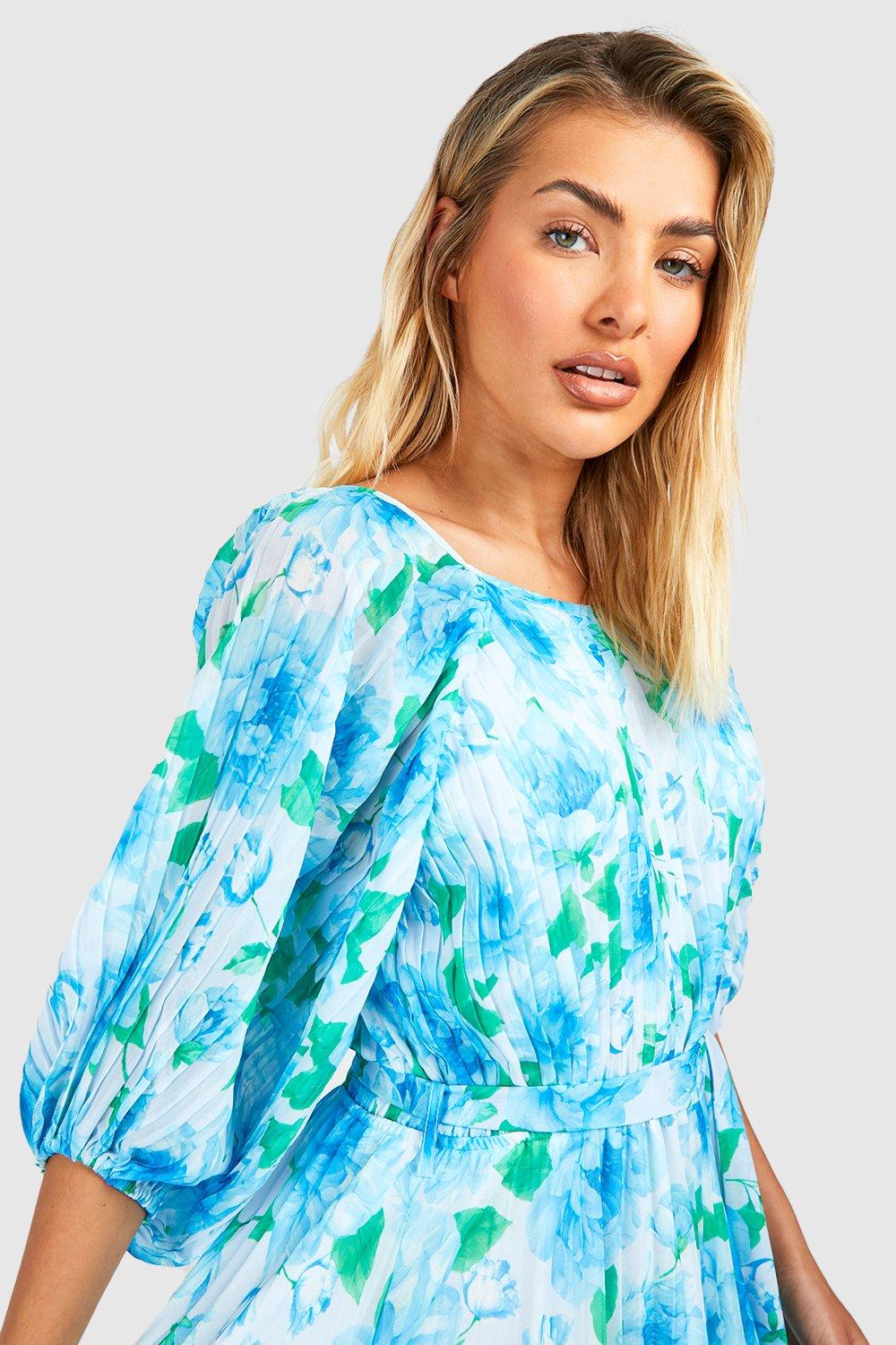 Women s Floral Pleated Puff Sleeve Midi Dress Boohoo UK Very well made.