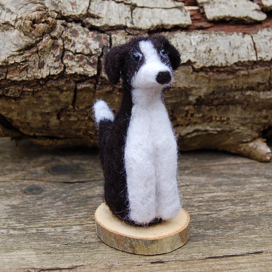 Needle felt white and black dog Border Colli Folksy Very well made.