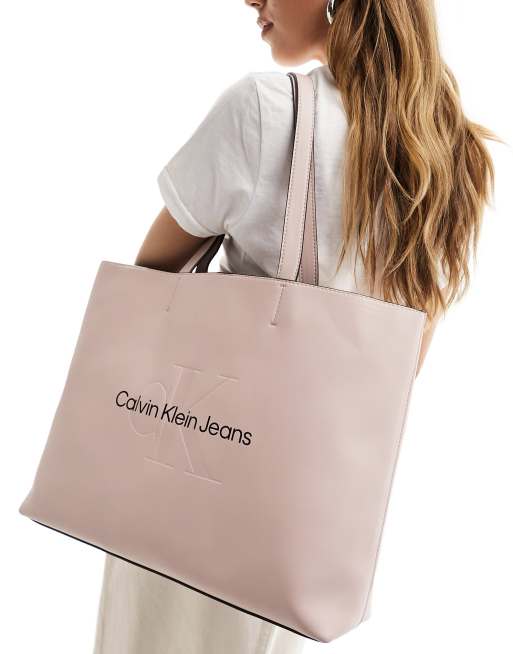 Calvin Klein Jeans Borsa shopping strutturata slim rosa pallido Very well made.