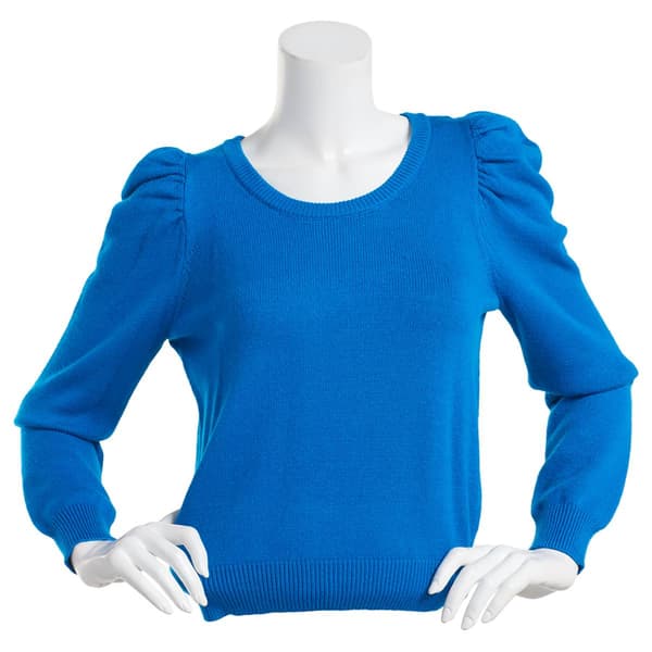 Juniors Pink Rose Puff Sleeve Ribbed Hem Crew Neck Sweater Very well made.