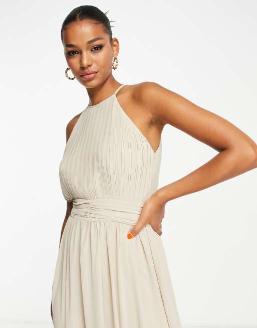 TFNC Bridesmaid chiffon maxi dress with pleated front in caffe Very well made.