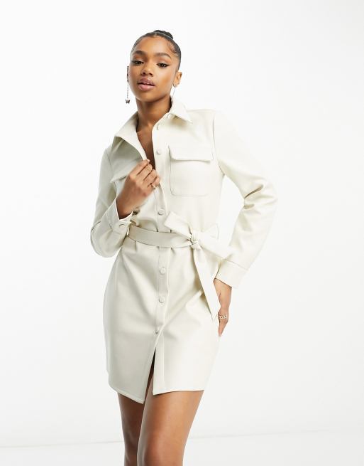 Miss Selfridge diamante trim faux leather mini shirt dress in cream Very well made.
