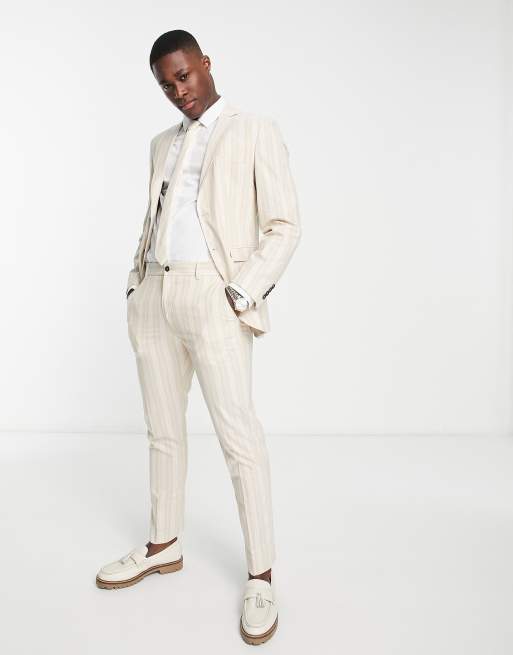 Selected Homme slim fit suit jacket in beige summer stripe ASOS Very well made.