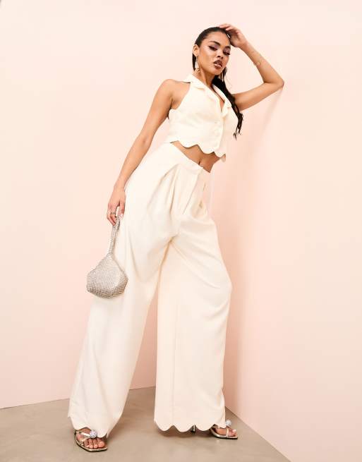 Textured Cropped Wide Leg Pants in Cream Very well made.