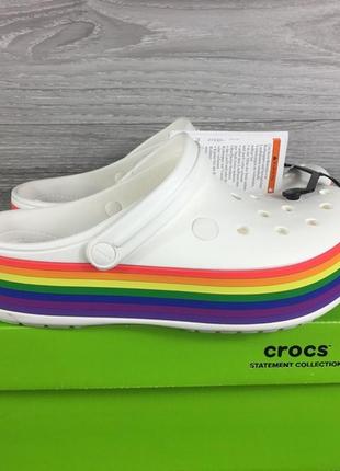 CROCS Crocband White Clogs with Rainbow Band mens size 13 Very well made.