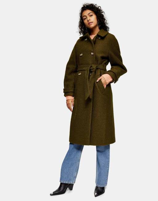 Topshop boucle trench coat in khaki ASOS Very well made.