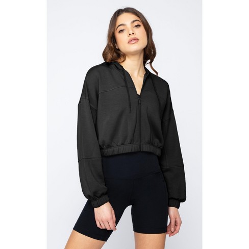 90 Degree By Reflex Women s Cloud Plush Front Zip Cropped Hoodie Top Black XX Large Very well made.