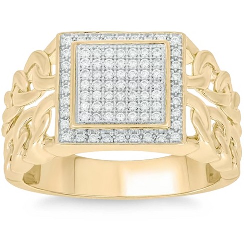 Pompeii3 1 3Ct TW Diamond Men s Chain Cuban Link Ring 10k Yellow Gold 9mm Wide Size 12 Very well made.