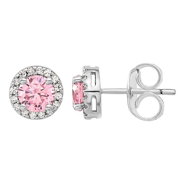 Diamonore Sterling Silver Pink White Cubic Zirconia Halo Stud Very well made.