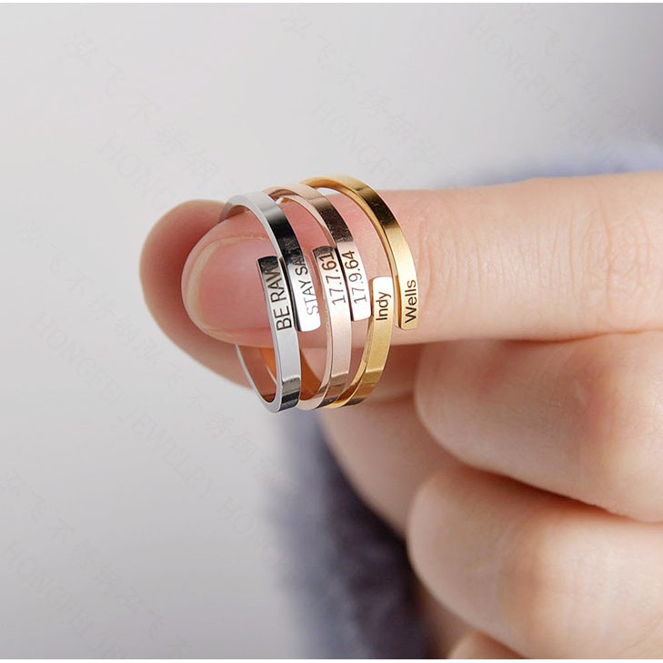CUSTOM double engraved ring personalized open ended cross band ring engrave names Couple rings 18K gold rose gold silver Very well made.