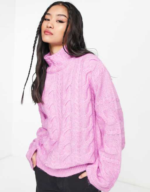 Pieces high neck cable knit jumper in bubblegum pink ASOS Very well made.