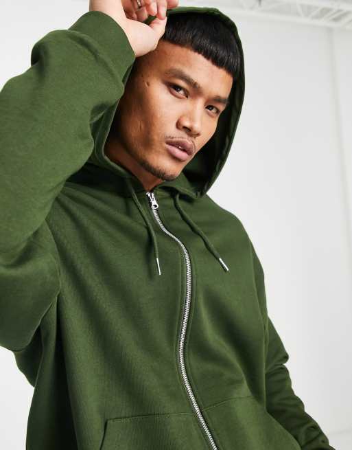 ASOS DESIGN oversized hoodie with zip in dark green Very well made.