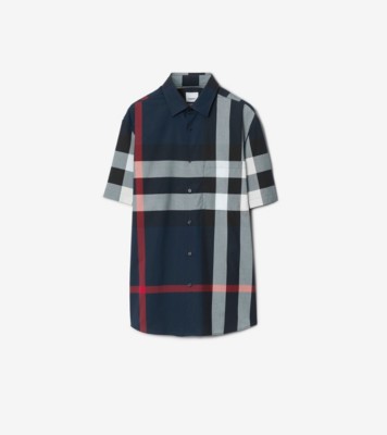 Check Cotton Shirt in Navy Men Burberry Official Very well made.