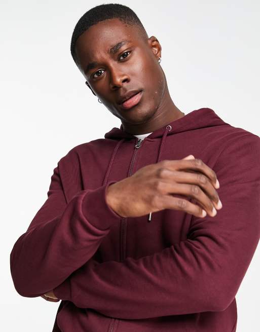 ASOS DESIGN zip up hoodie in burgundy Very well made.