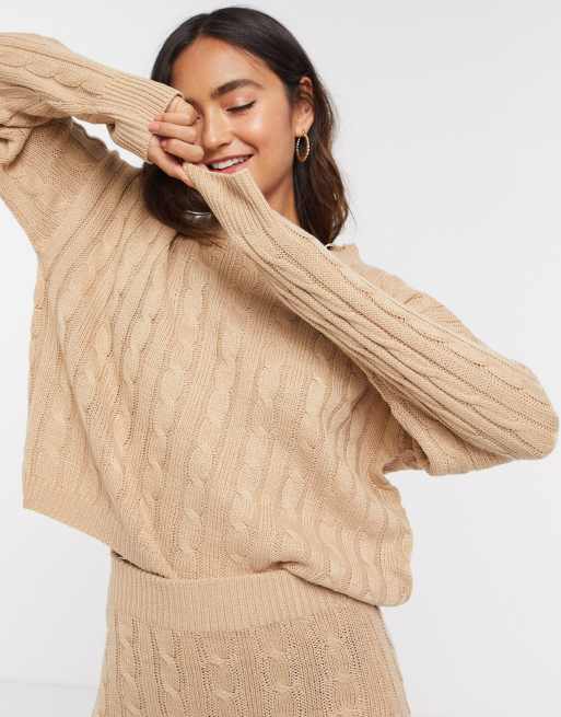 Brave Soul 2 piece cable knit jumper and and midi skirt set in biscuit Very well made.