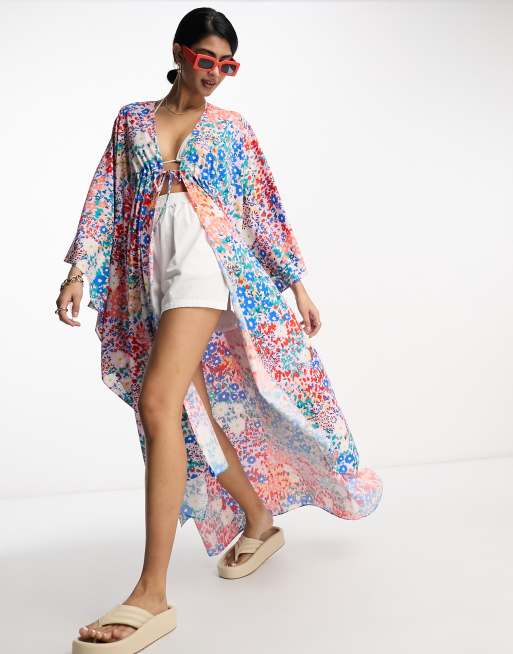 Vila Caftan de plage long fleurs vari es Bleu ASOS Very well made.