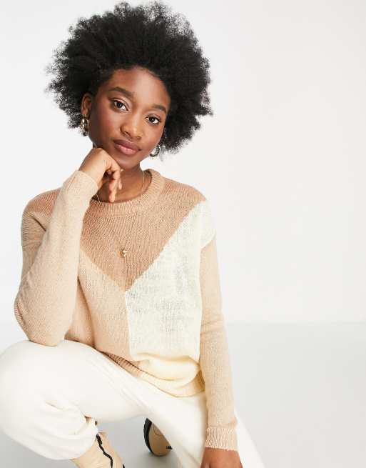 Brave Soul chevson colour block crew neck jumper in camel Very well made.