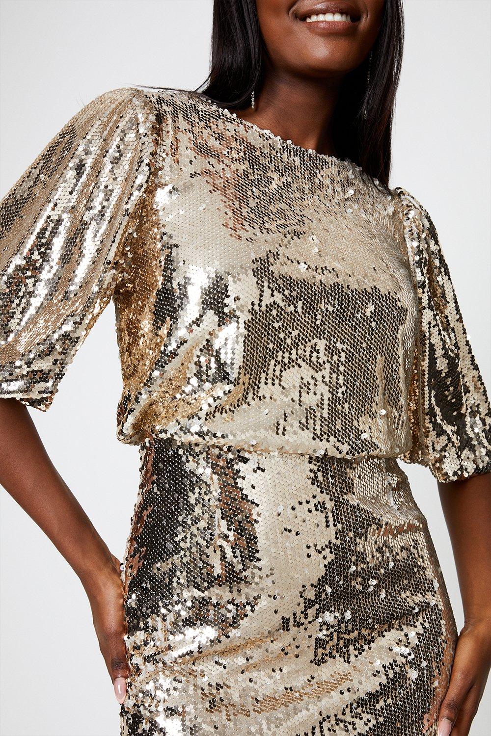 Dresses Gold Sequin Midi Dress Dorothy Perkins Very well made.