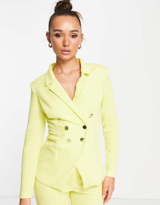 ASOS DESIGN jersey textured double breasted suit blazer in yellow Very well made.