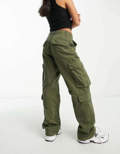 Bershka Petite drawstring waist cargo trousers in khaki Very well made.
