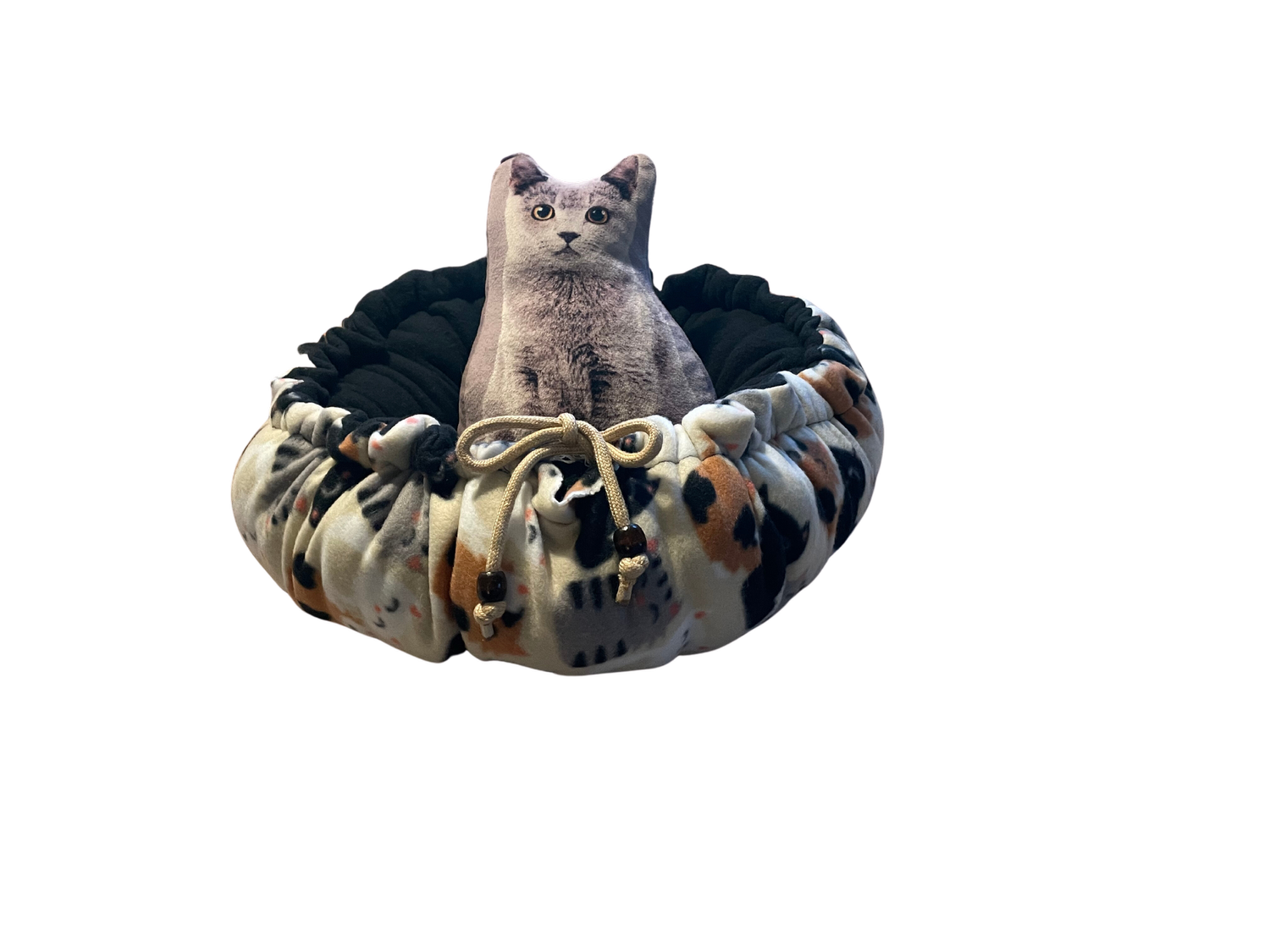 Fleece plush pet bed with drawstring pull. Super soft fleece with Very well made.