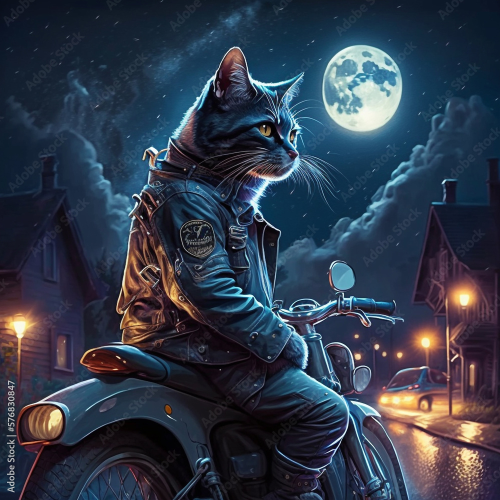 Cat in Leather Jacket Modern Digital Art Very well made.