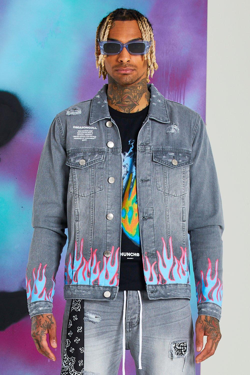 Quavo Skull And Flame Denim Jacket boohoo Very well made.