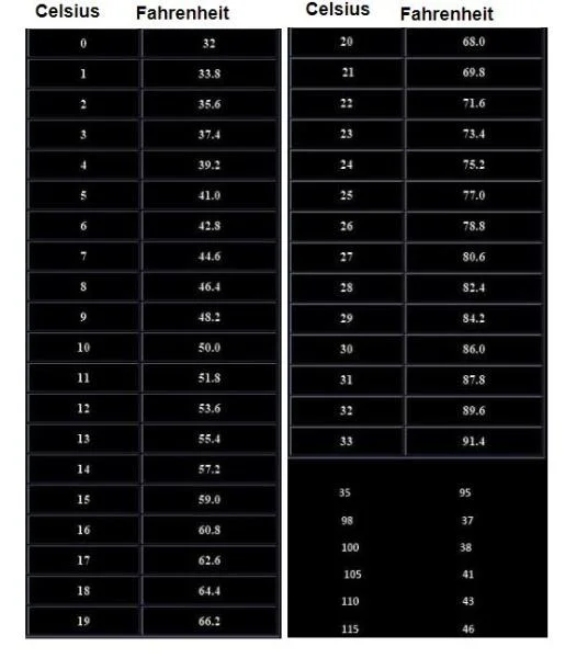 Fahrenheit and Celsius Conversion Table Chart Very well made.