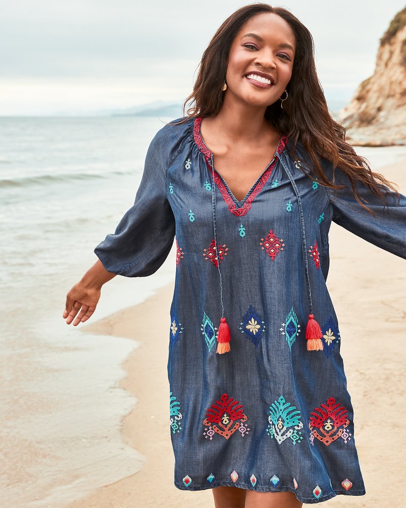 Chambray Ikat Split Neck Tunic Very well made.