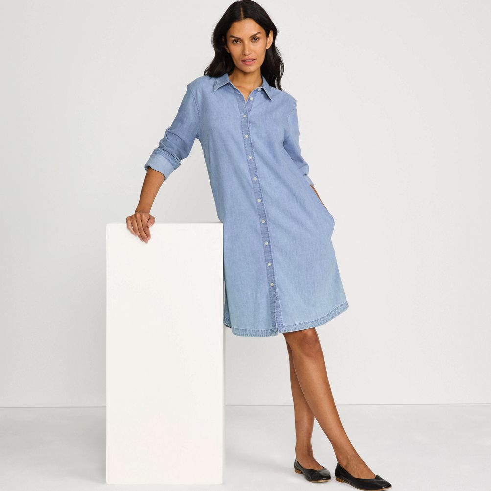 Women s Chambray Button Front Knee Length Dress Lands End Very well made.
