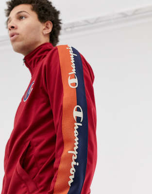 Champion Tricot track jacket with large logo and taping in red ASOS Very well made.