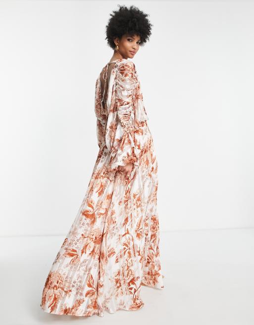 ASOS DESIGN Tall satin stripe blouson maxi dress with ring detail in floral print Very well made.