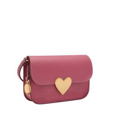 Fossil Marlow Leather Flap Crossbody Handbag Saddle Bag Pink New Very well made.