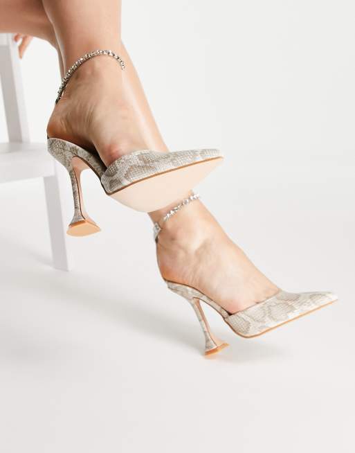 Public Desire Jordyn Chaussures effet peau de serpent talon et bride de cheville Beige Very well made.