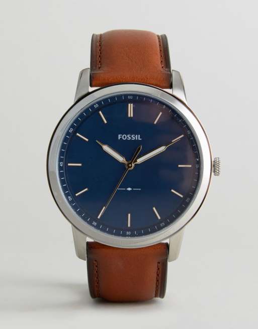 Fossil Minimalist Blue Dial Brown Leather Mens Watch FS5304 Very well made.