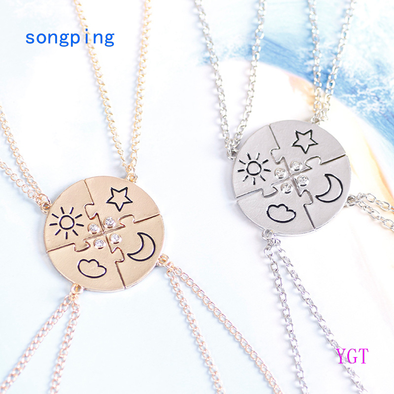 4 Piece Set Charm Bff Pendant Fashion Sun Moon Cloud Star Friendship Necklace Men Women Gold Very well made.