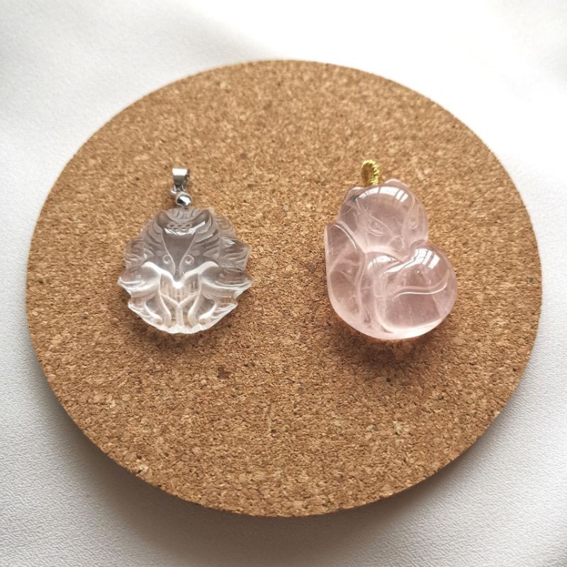 Natural crystal Rose Quartz Fox Fairy Nine tailed Fox pendant Very well made.